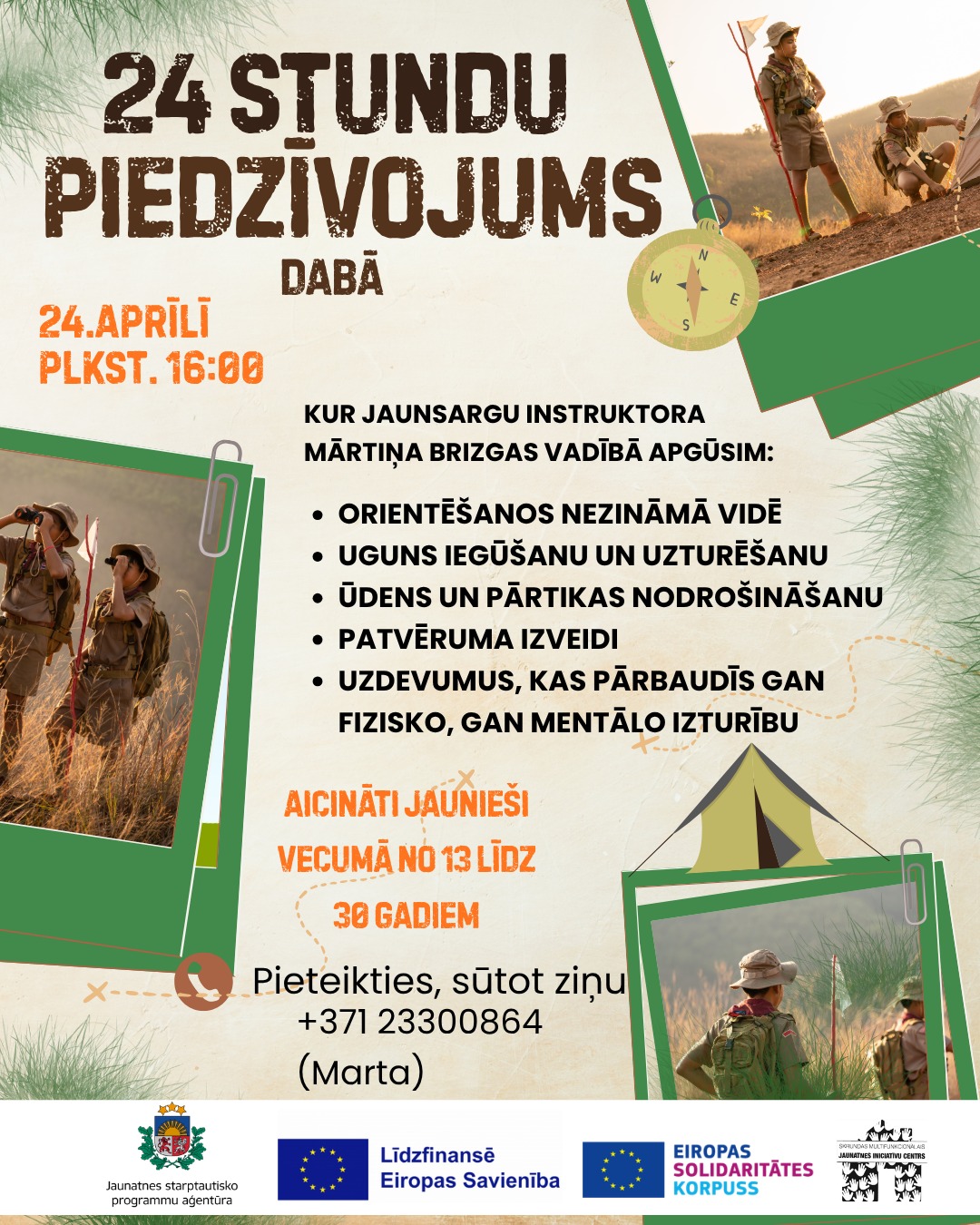 Svarīgi: dalībniekiem jāierodas zābakos un laikapstākļiem atbilstošā apģērbā dzīvošanai mežā.