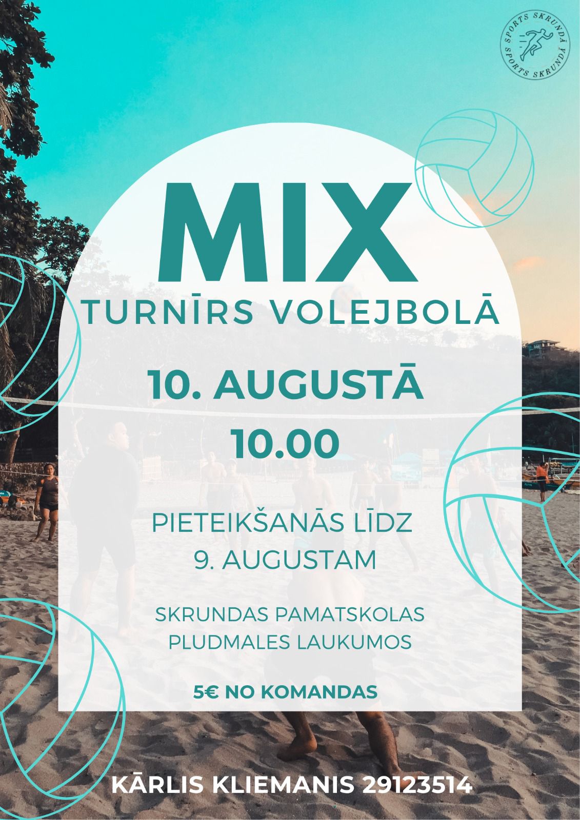 Nāc un piedalies aizraujošā pludmales volejbola turnīrā 10. augustā plkst. 10.00, kas norisināsies Skrundas pamatskolas smilšu laukumos.