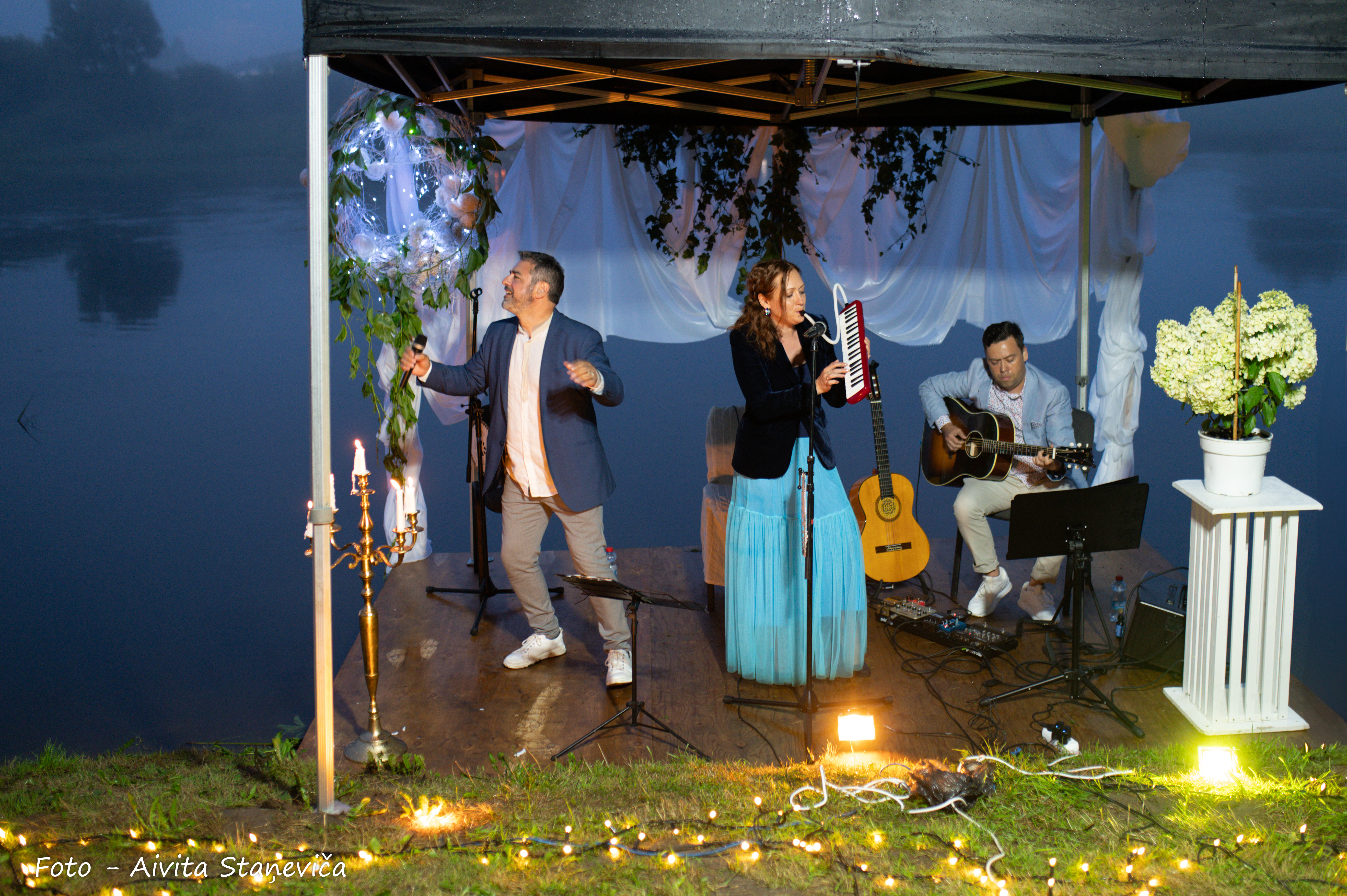 Ventas labajā krastā ar muzikālu sniegumu priecēja dziedātāja Aija Vītoliņa kopā ar pianistu Romānu Vendiņu, sniedzot lirisku un emocionāli piesātinātu priekšnesumu. Tikmēr kreisajā krastā klausītājus priecēja dziedātāju Ineses Ērmanes un Havjēra Fernandezsa duets, ko papildināja ģitārista Aleksandra Kuzmina stīgu skaņas. Savukārt pašā Ventā – uz plosta – Marta Apines un Grankanārijas mūziķa Neftali Robainas saksafonu skaņas.