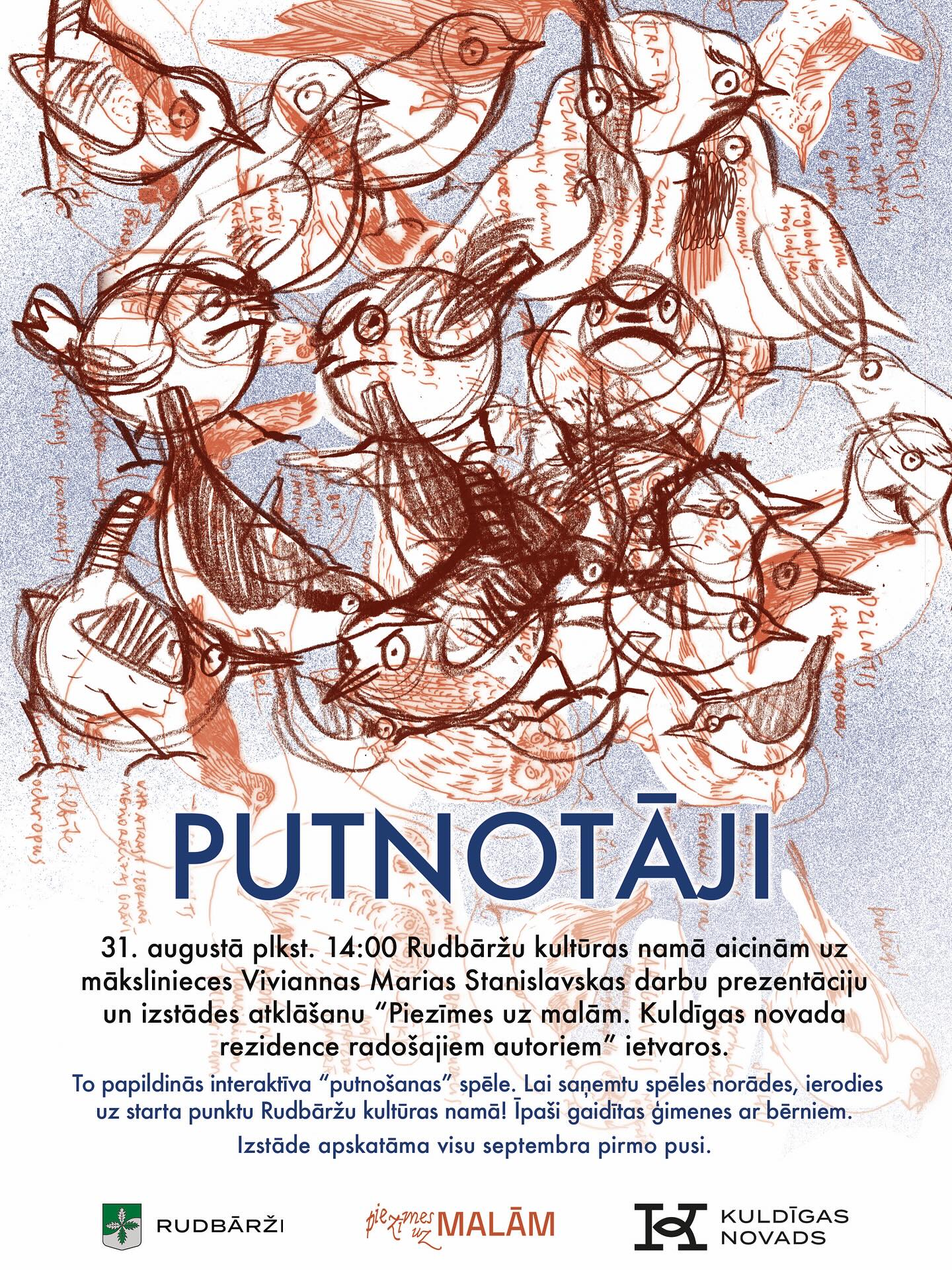 31. augustā plkst. 14.00 Rudbāržu kultūras namā notiks projekta “Piezīmes uz malām” rezidentes, mākslinieces Viviannas Marias Staņislavskas darbu prezentācija. Tajā būs iespēja iepazīt rezidencē tapušos darbus un piedalīties interaktīvā “putnošanas” spēlē.