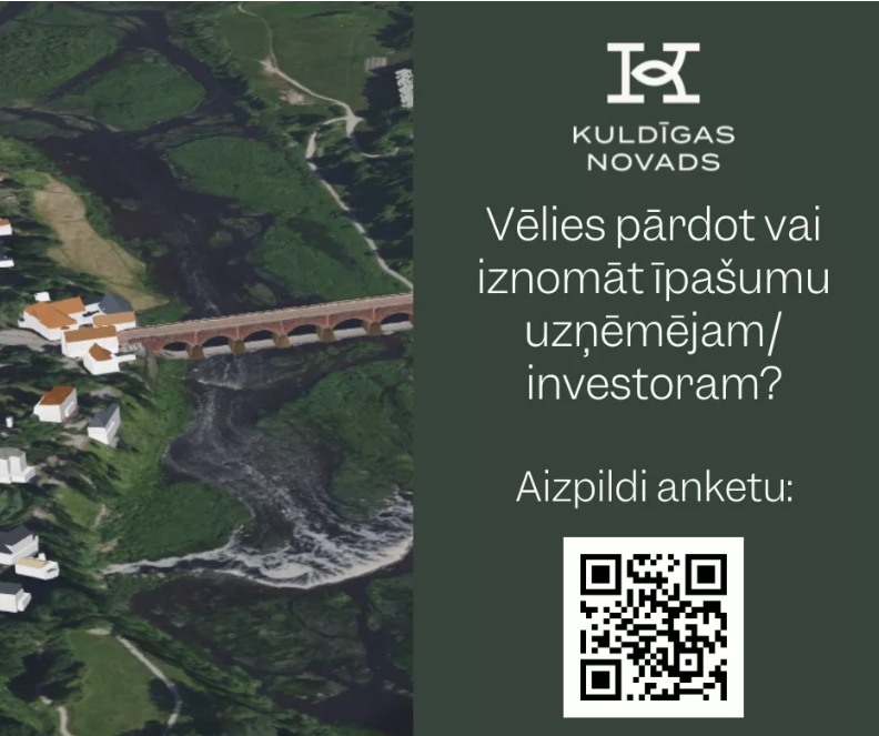 Kuldīgas novada pašvaldība turpina apkopot uzņēmējdarbībai un investīcijām pieejamos nekustamos īpašumus, lai tie vienkopus būtu pieejami potenciālajiem investoriem, tādēļ juridiskas un fiziskas persona aicinātas aizpildīt anketu.