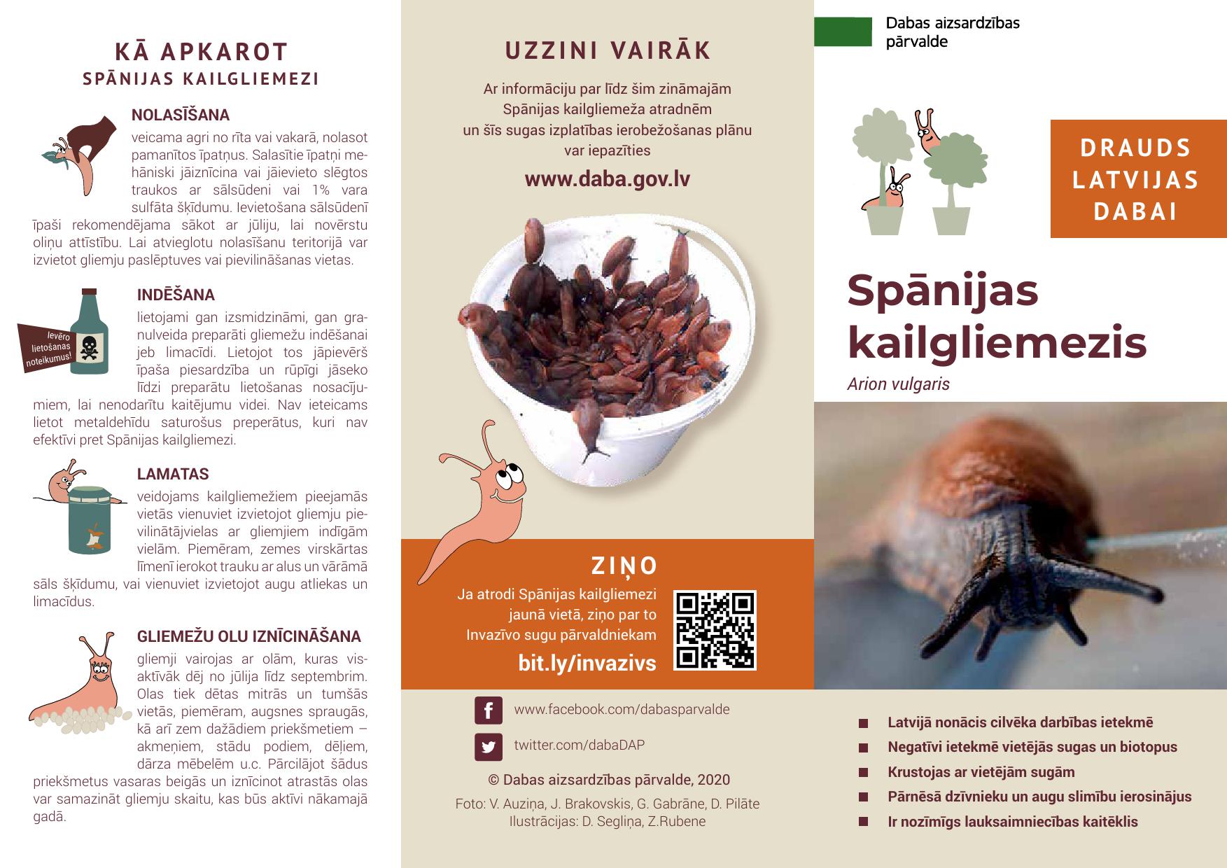 Latvijā turpina izplatīties invazīvā suga – Spānijas kailgliemezis (Arion vulgaris), kas rada nopietnus draudus vietējai ekosistēmai, lauksaimniecībai un dārzu kultūrām. Šī suga ir īpaši bīstama, jo tā spēj ātri vairoties un izplatīties, radot būtiskus zaudējumus un apdraudot vietējo bioloģisko daudzveidību. Kuldīgas novada pašvaldības būvvalde aicinām ikvienu iedzīvotāju iesaistīties un veikt nepieciešamos pasākumus, lai ierobežotu šī kaitēkļa izplatīšanos.
