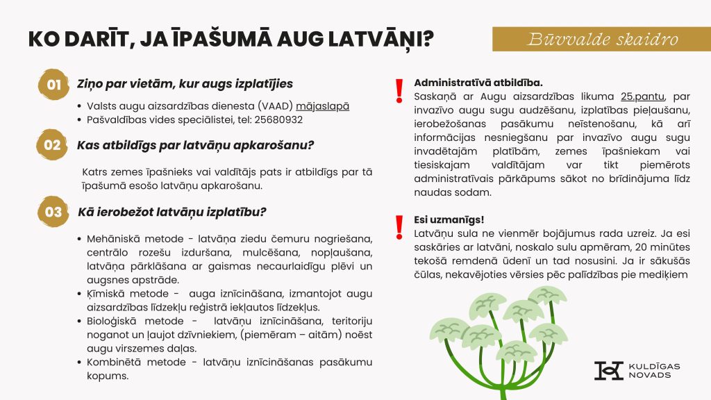 Ko darīt, ja īpašumā aug latvāņi? Kuldīgas novada būvvalde dod praktisku ieteikumus: