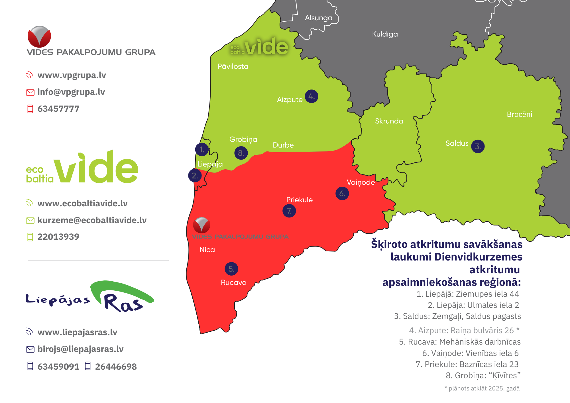 - atkritumu apsaimniekošanas reģionālajā centrā SIA “Liepājas RAS”, “Ķīvītes” Grobiņas pagastā, Dienvidkurzemes novadā.