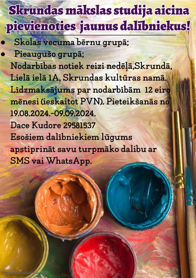 Skrundas Mākslas studija aicina pievienoties jaunus dalībniekus.