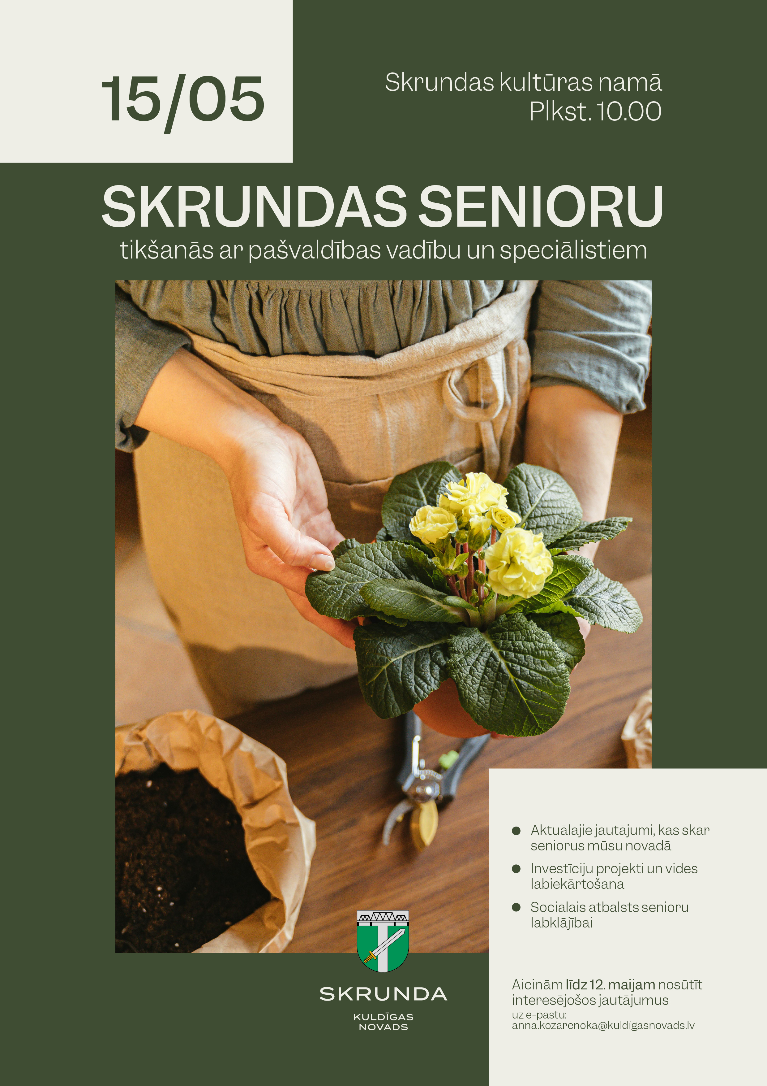 Skrundas pilsētas un apkārtnes seniori ir laipni aicināti piedalīties tikšanās reizē ar Kuldīgas novada pašvaldības vadību.