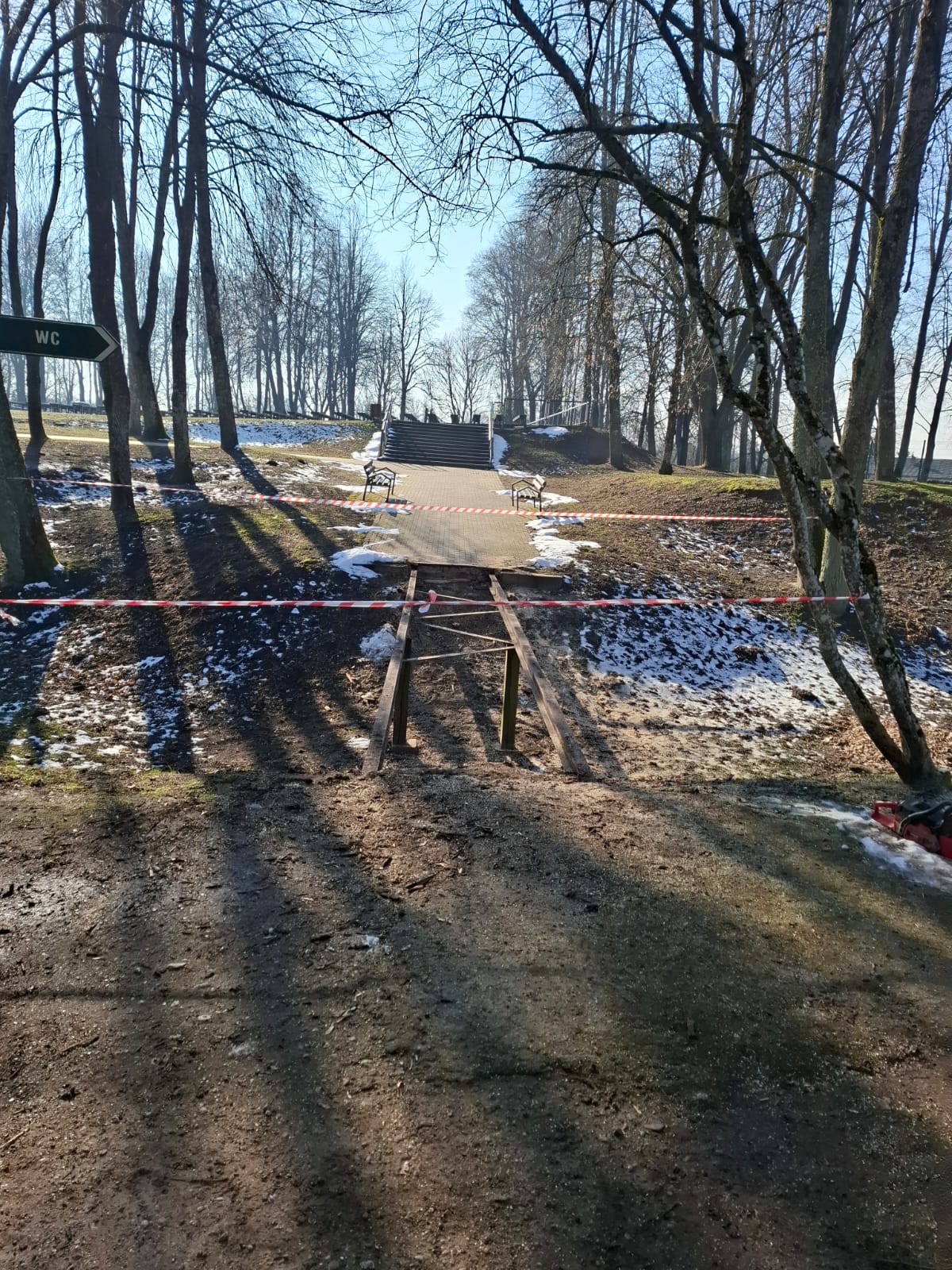SIA "SKRUNDAS KOMUNĀLĀ SAIMNIECĪBA" uzsākusi darbu pie gājēju tiltiņu atjaunošanas Skrundas pilskalnā