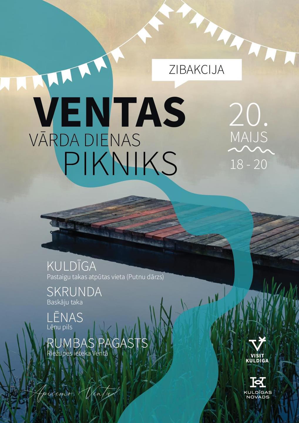 Aicinām novadniekus pirmdien, 20. maijā no plkst. 18:00 līdz 20:00 līdzi ņemot piknika groziņus un labu garastāvokli, pievienoties kādai no Ventas upes vārda dienas svinību vietām. Vai arī ierīkot savu pikniku kādā citā vietā Ventas upes krastā, lai, kopā ar draugiem baudītu vakaru makšķerējot, sarunājoties un atzīmējot mūsu mīļās upes svētkus.