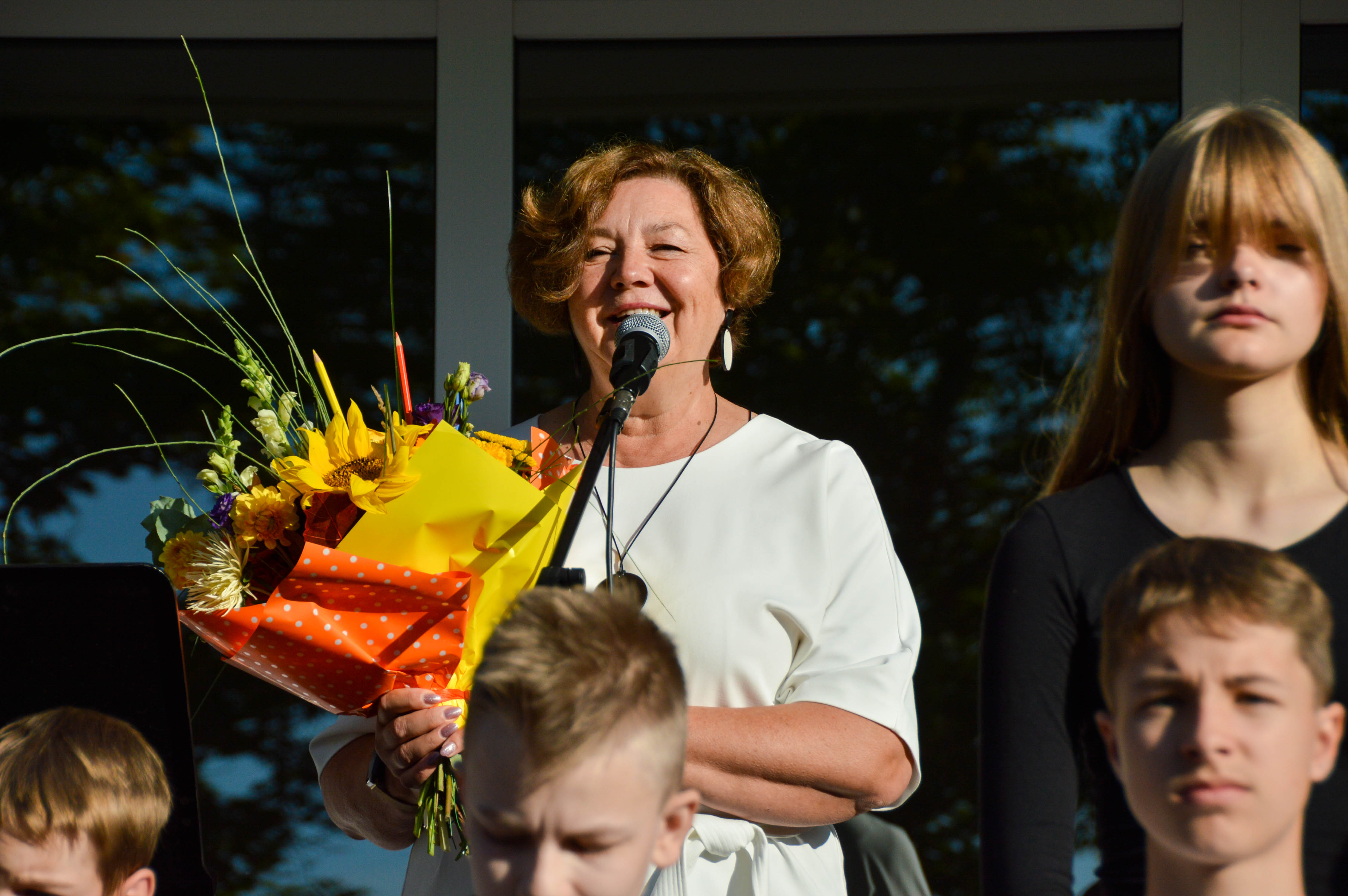 Skrundas pamatskolas direktore Agita Grāvere-Prenclava Zinību dienā ikvienam vēlēja veiksmīgu un jaunām zināšanām, prasmēm un iemaņām piepildītu jauno mācību gadu.