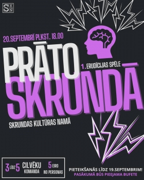 Aicina uz pirmo spēli no erudīcijas spēļu cikla "Prāto Skrundā"! Vasara tuvojas izskaņai, tāpēc atzīmē 20. septembri, lai piedalītos aizraujošā spēlē, kurā vienojas ģimenes, draugi, kolēģi un domubiedri.