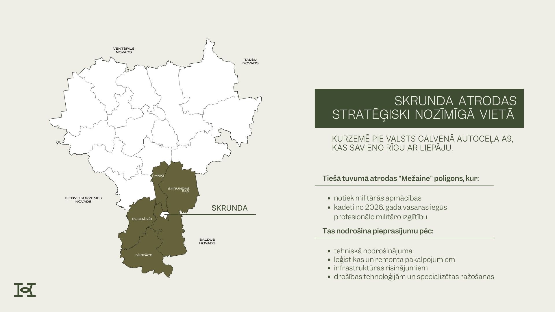 Skrundas tuvumā esošais Mežaines militārais poligons rada arī papildu pieprasījumu pēc loģistikas, tehniskā nodrošinājuma, infrastruktūras un specializētas ražošanas pakalpojumiem.