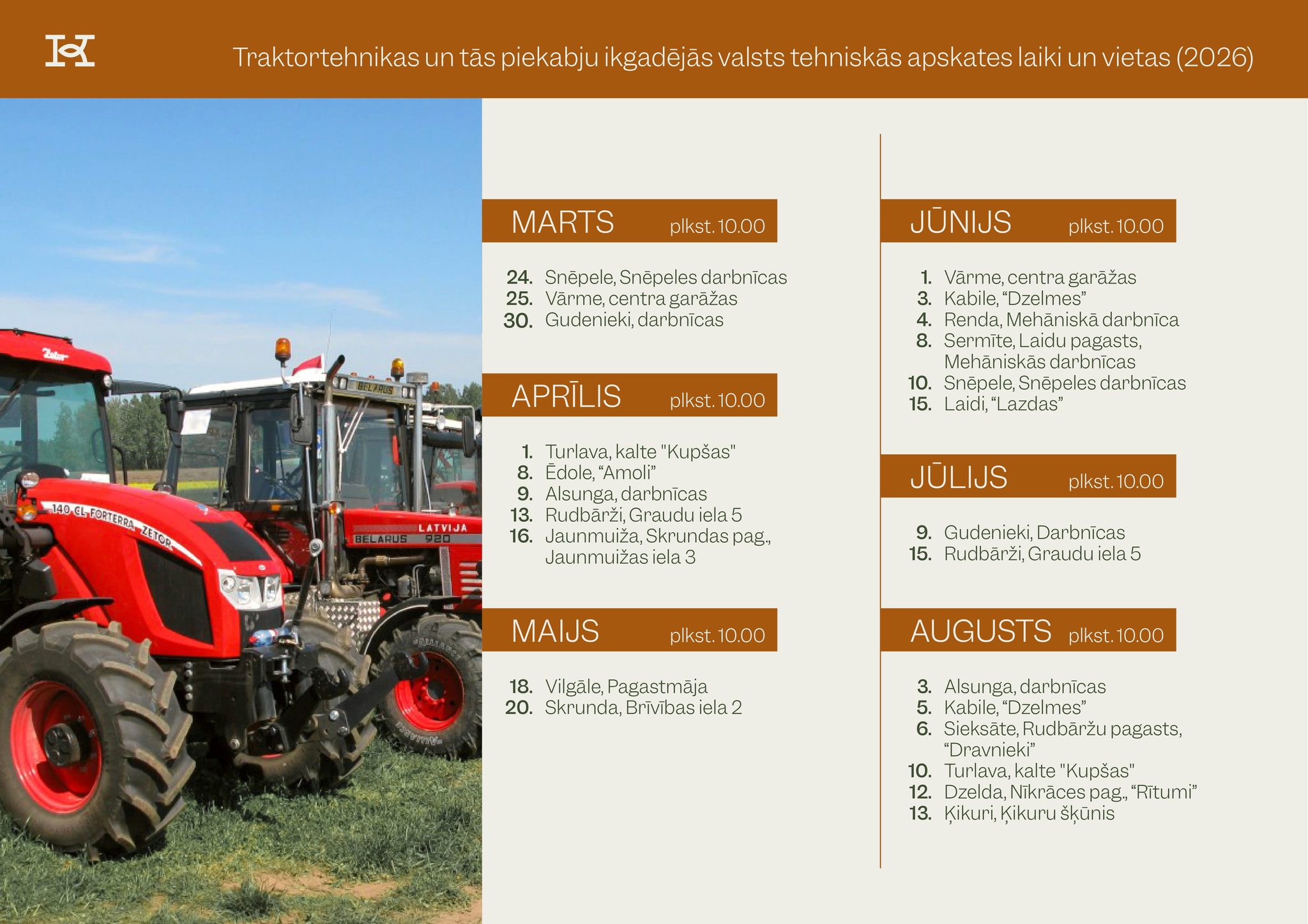 Kamēr ziema ne tuvu nav pavasara noskaņās, Valsts tehniskās uzraudzības aģentūra (turpmāk – VTUA) jau ir saplānojusi valsts tehniskās apskates izbraukuma grafiku traktortehnikai (turpmāk – TR), kuras laikā dosies maksimāli tuvu TR atrašanās vietai. Tas nozīmē, ka līdz ar pavasara gaidīšanu strauji tuvojas aktīvā lauksaimniecības sezona, ar palielinātu TR intensitāti ceļu satiksmē visos Latvijas novados.