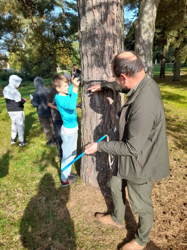 1. oktobra rītā pie topošās āra klases pulcējās Skrundas vidusskolas skolēni, kuriem Valsts meža dienesta inženieris meža aizsardzības jautājumos Oskars Zaļkalns pastāstīja par sava darba specifiku un izaicinājumiem. Parādīja jauniešiem, kā notiek koku mērīšana un gadskārtu nolasīšana, kā arī par koku vērtību un mežkopības kā tautsaimniecības nozari nozīmi valsts ekonomikā. Atzīmēja arī to, ka svarīgi ir ne vien meži, bet arī parki pilsētās, kā tos pareizi kopt un saglabāt.