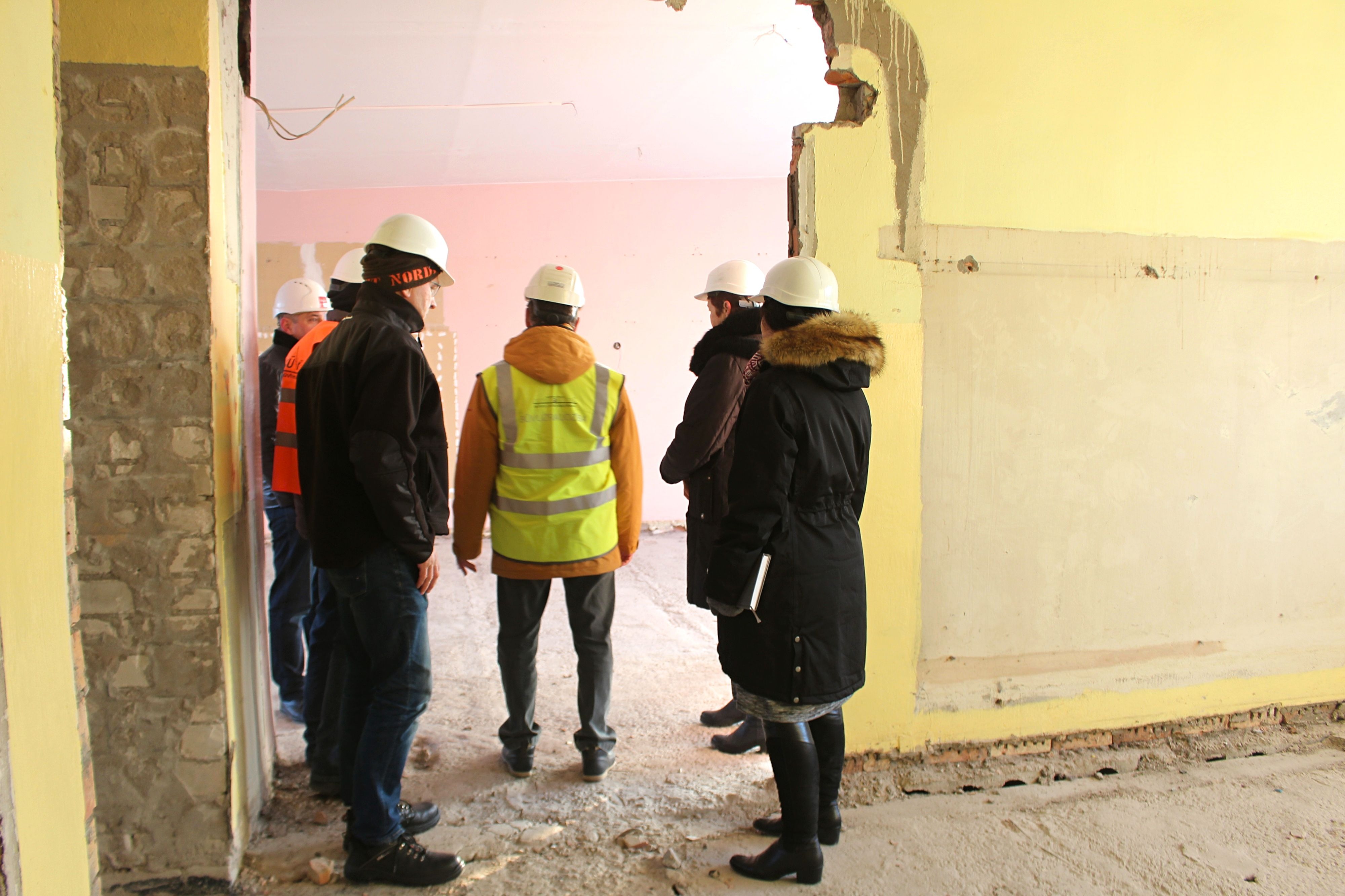 Pasūtītāja un būvnieku pārstāvji kopā ar būvuzraugu apsekoja telpas, iepazīstoties ar paveiktajiem darbiem, būvdarbu gaitu, kā arī tika apspriesti turpmākie darbi.