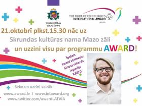 Valsts izglītības satura centra īstenotā projekta ietvaros 21. oktobrī Skrundā ieradīsies Edinburgas hercoga starptautiskās jauniešu pašaudzināšanas programmas Award vēstneši – programmas Award nacionālā koordinatore, esošie Award dalībnieki un Ginesa rekorda ieguvējs Kārlis. Vizītes laikā Award vēstneši iepazīstinās interesentus ar programmu Award un labumu, ko tā var dot gan programmas dalībniekiem, gan visai sabiedrībai.