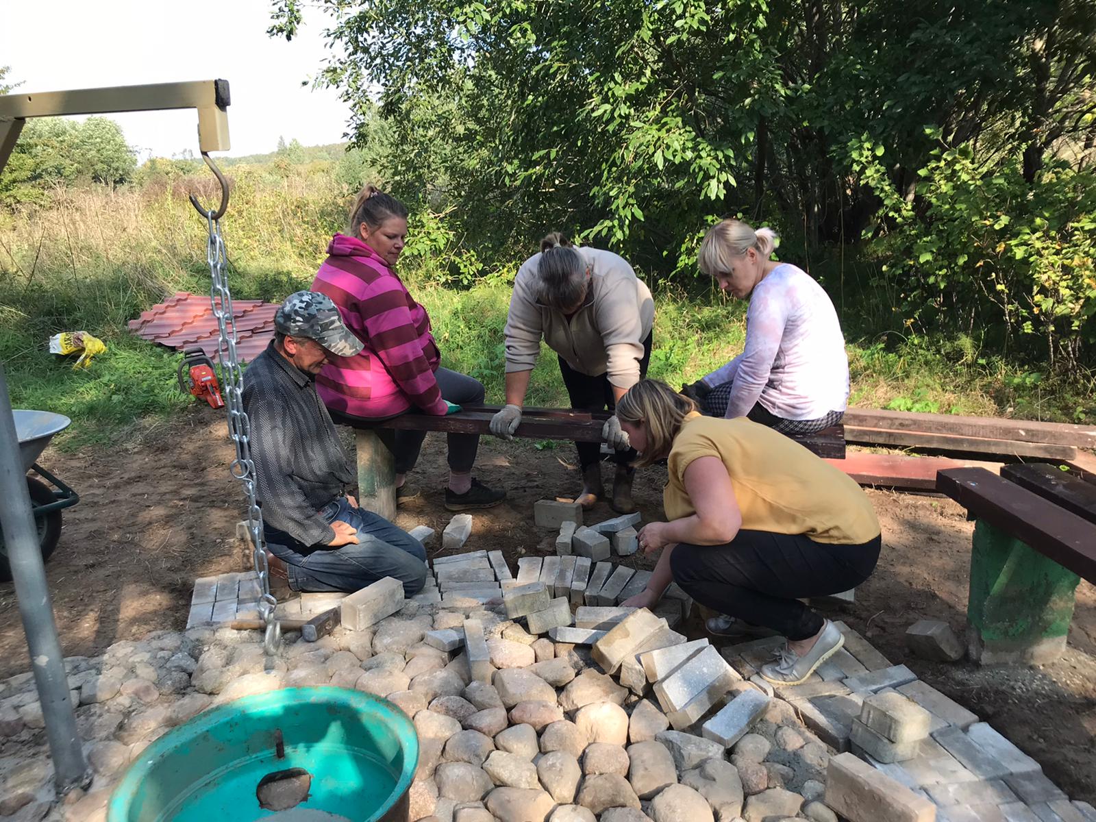 Projekta laikā darba grupas dalībnieki veica katram uzticētos pienākumus. Tika izpļauta aizaugusī teritorija, izzāģēti liekie un sausie koki, sagādāti materiāli, lai var izgatavot atkritumu tvertnes, sagādāti materiāli akmens labirintam un baskāju takai. Izgatavojām foto rāmi un izveidojām malkas novietni. Vienpadsmit personas atbalstīja projektu ar savām artavām ziedojot nepieciešamās lietas, lai projekts tiktu realizēts.