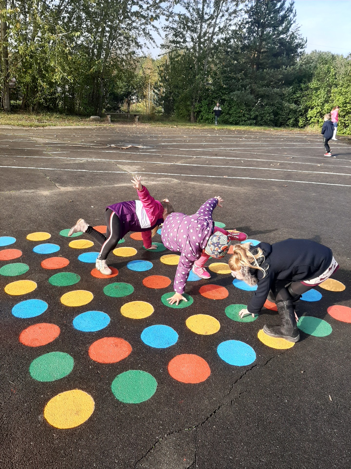 Projektu īstenoja 5 biedrības biedri, kuri ar savu brīvprātīgo darbu uzzīmēja 9 spēles uz asfalta. Kā stāsta biedrības pārstāvji: “Sākumā tika sagatavoti trafareti – cipari, pēdiņas. Tad sekoja mērīšanas darbi. Pēcāk zīmējumi. Jā, mums bija ārējie apstākļi, kas traucēja projekta īstenošanu. Tie bija riteņbraucēji, kuriem šķita interesanti ar riteņiem pabraukāt pa uzzīmētajām spēlēm. Problēma bija tā, ka krāsa un laka tik ātri nenožuva. Bijām pat spiesti 3. reizi pārklāt ar krāsu, lai nodzēstu riepu nospiedumus. Tādēļ arī nopirkām norobežojošo lenti, ar kuru ierobežojām nokrāsotos laukumus.”.