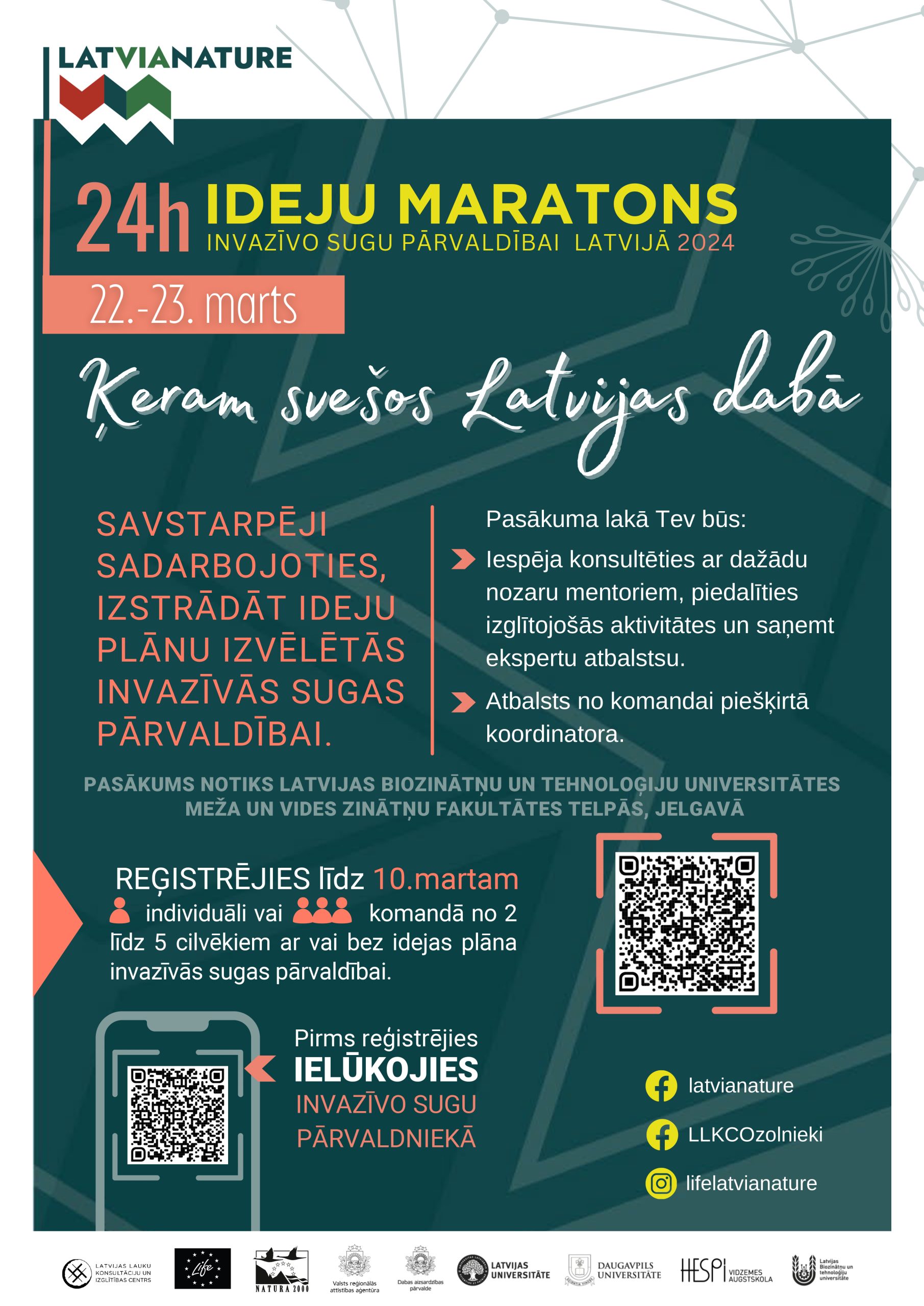 Lai rastu jaunas idejas, kas Latvijā iepriekš nav pielietotas, izmaksu ziņā ir efektīvas, selektīvas (uz konkrēto organismu iedarbīgas), dabai draudzīgas un iespējami plaši pielietojamas citās teritorijās, ikviens interesents aicināts piedalīties ideju maratonā “Ķeram svešos Latvijas dabā!”.