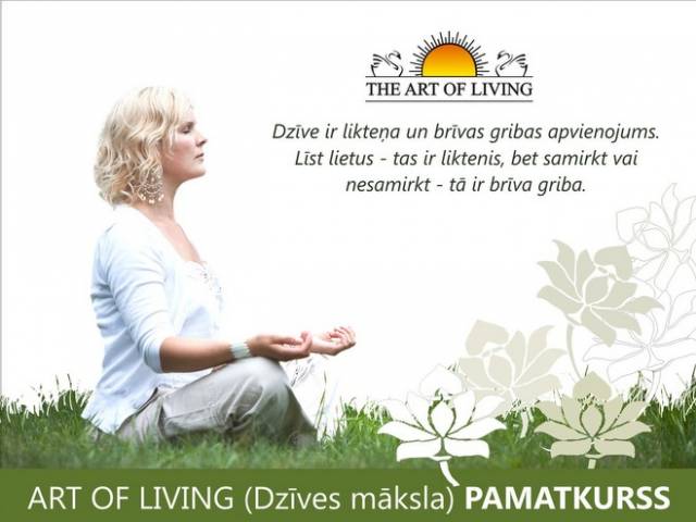 Kursa komplekss ietver spēcīgas elpošanas tehnikas, meditācijas un viegli apgūstamus jogas vingrinājumus, kā arī praktiskas zināšanas par cilvēka prātu un emocijām. Kursa centrā ir elpošanas tehnika Sudarshan Kriya, ar kuras palīdzību var attīrīt fizisko ķermeni, palielināt imunitāti, atbrīvoties no stresa un iegūt emocionālu stabilitāti un mieru. Kursu vadīs: skolotāja Līga Krustkalna Kurss sākas: 28. martā plkst. 18.30 Kursa laiki: 28. martā 18.30–21.00; 29. martā. 10.00–15.30; 30. martā 10.00–15.30; 31. martā 18.30–22.00 Kursa norises vieta: Skrunda, kultūras nams Kursa maksa: ieskaitot kontā EUR 50,-; studentiem, pensionāriem EUR 35,-; atkārtotājiem EUR 15,-. Maksājuma uzdevumā lūdzu norādiet kursa vietu un laiku. Pārskaitījums: "ART OF LIVING LATVIA", SIA, NMR 40103234153, jurid. adrese: Dīķa 20–4, Rīga "Swedbank" AS, HABALV22, LV33HABA0551024631797 Papildu informācija un pieteikšanās: Daina, tālr. 29407389 Teksts: Daina Ābele, Skrundas novada pašvaldības iestādes "Alternatīvās aprūpes dienas centrs" vadītāja