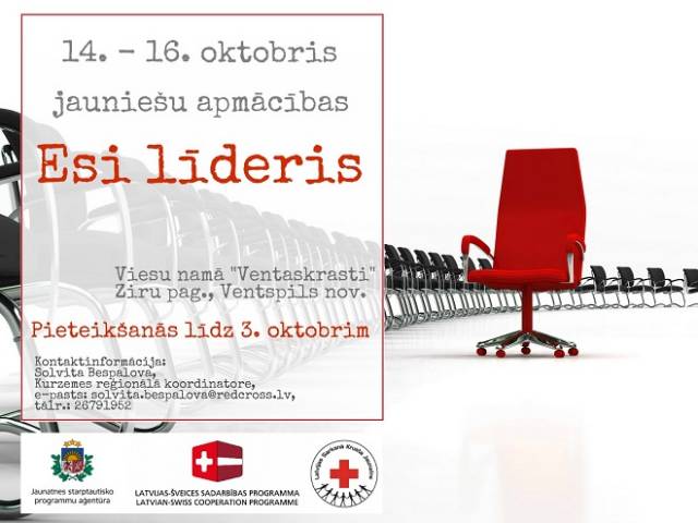 Apmācību mērķis ir veidot jauniešu izpratni par dažādiem līdzdalības veidiem un sniegt praktiskus rīkus politiskās līdzdalības praktizēšanai, attīstīt līdera spējas un spēju motivēt un iesaistīt citus jauniešus padomes vai jauniešu iniciatīvas grupas aktivitātēs, kā arī celt jaunatnes padomju un iniciatīvu grupu kapacitāti, sniedzot zināšanas par dalības iespējām dažādās programmās un projektos. Pieteikšanās apmācībām šeit: http://ej.uz/liderisKurzeme, pieteikšanās termiņš: 3. oktobris. Rezultāti tiks paziņoti visiem personīgi līdz 2016. gada 5. oktobrim. Dalībnieku profils: jaunieši no jaunatnes padomēm vai jauniešu iniciatīvu grupām, vecumā no 15 līdz 22 gadiem. Apmācības paredzētas 22 dalībniekiem.