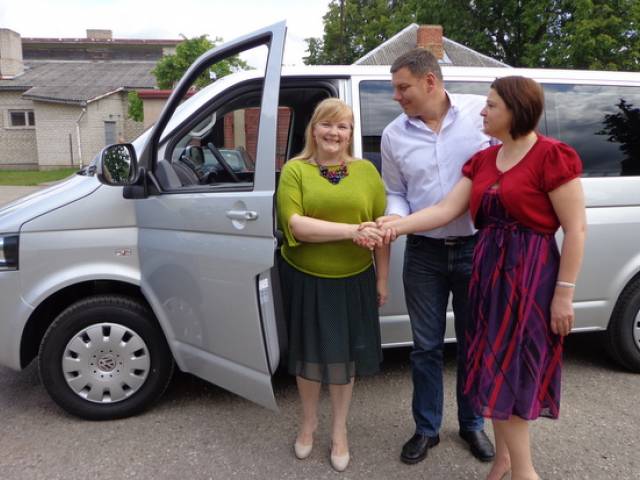14. jūlijā Skrundas veselības un sociālās aprūpes centra sētā ieripoja jauns mikroautobuss Volkswagen Caravelle, kas par Skrundas novada pašvaldības līdzekļiem iegādāts centra klientu ar īpašām vajadzībām un gulošu pacientu pārvadāšanai.“Bieži Kuldīgas, Saldus vai Liepājas ārstniecības iestāžu pacientus izraksta, norīkojot tālākai ārstēšanai Skrundas veselības un sociālās aprūpes centrā. Lai pacientu piederīgajiem atvieglotu transportēšanas jautājumu risināšanu un nodrošinātu noteikumiem un prasībām atbilstošu, visiem pieejamu un kvalitatīvu pakalpojumu sniegšanu, pašvaldībā tika lemts par šāda transporta līdzekļa iegādi,” tā Skrundas veselības un sociālās aprūpes centra direktore Sigita Picule.Mikroautobuss jau rūpnīcā ir ticis speciāli aprīkots, lai tā salonā varētu uzstādīt un nostiprināt gulošas personas transportēšanas nestuves.Pamatojoties uz Skrundas novada pašvaldības rīkotā iepirkuma rezultātiem, līgums par mikroautobusa iegādi tika noslēgts ar SIA “Moller Auto Ventspils”. Līguma summa ir EUR 42 860,00, un finansējums mikroautobusa iegādei tika paredzēts iepriekš, plānojot pašvaldības 2015. gada budžetu. Teksts un foto: Didzis Strazdiņš, Skrundas novada pašvaldības sabiedrisko attiecību speciālists