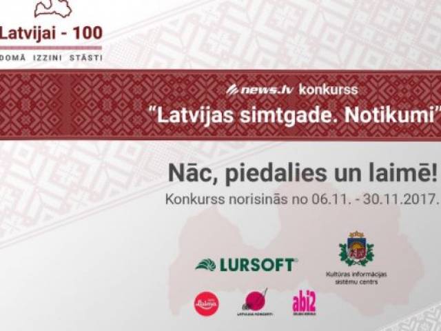 No 2017. gada 6. novembra līdz 2018. gada 23. novembrim Latvijas bibliotēkās uzņēmums “Lursoft IT” un Kultūras informācijas sistēmu centrs (KISC) rīko konkursu “Latvijai – 100. Domā. Izzini. Stāsti!” un laimēt noderīgas balvas - biļetes uz dažādiem kultūras pasākumiem un dāvanu kartes.Latvija var lepoties ar saviem cilvēkiem, vietām un arī notikumiem, tāpēc katra no konkursa kārtām veltīta vienai no šīm tēmām, gaidot Latvijas simtgadi, izceļot saulītē valsts svarīgākos un atmiņā paliekošākos notikumus, spilgtākos cilvēkus un nozīmīgākās vietas. Laika posmā no 2017. gada 6. novembra līdz 2018. gada 23. novembrim ikviens publisko bibliotēku lasītājs aicināts pierādīt savu erudīciju un radošumu, piedaloties kādā no konkursa kārtām, bet vislabāk - visās trīs kārtās. Konkursa pirmā kārta "Latvijas simtgade. Notikumi" norisināsies no 2017. gada 6. novembra līdz 30. novembrim. Kā piedalīties konkursā: • Esi radošs un vēlies izpausties rakstiski, iesūti konkursam eseju. • Savukārt savu erudīciju vari pierādīt atbildot uz 10 jautājumiem par konkursa attiecīgās kārtas tēmu. Ielāgo, ka atbildēt uz konkursa erudīcijas jautājumiem vai pievienot eseju vari tikai publiskajās bibliotēkās!KONKURSA NOLIKUMShttp://news.lv/konkurss-latvijai-100Informāciju apkopoja: Mārīte Kviese, Rudbāržu bibliotēkas vadītāja