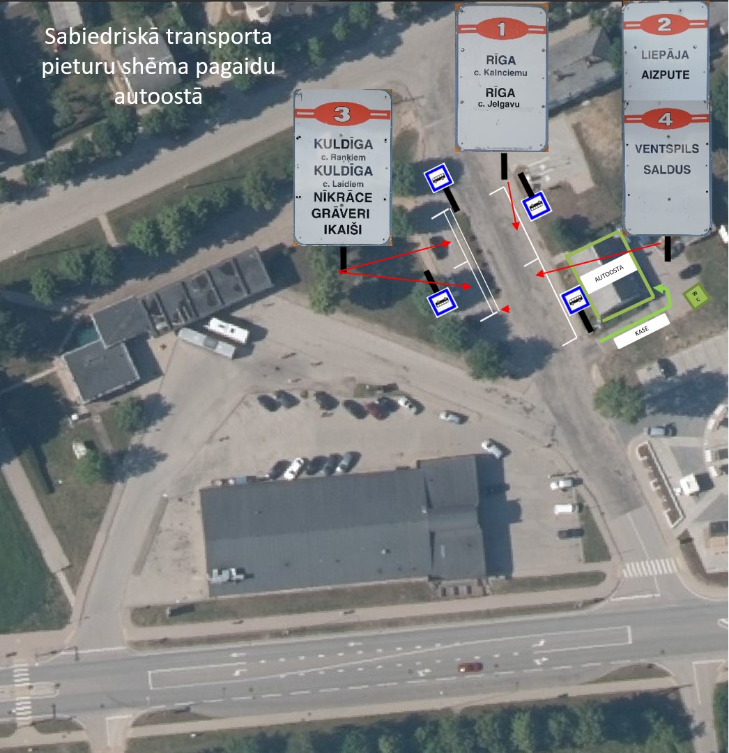 SIA “SKRUNDAS KOMUNĀLĀ SAIMNIECĪBA” informē, ka saistībā ar Skrundas autoostas rekonstrukciju no 2021. gada 6. jūlija līdz rekonstrukcijas beigām, veiktas izmaiņas sabiedrisko autobusu pagaidu pieturu izvietojumā.